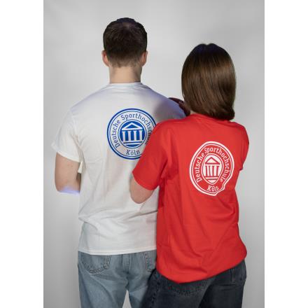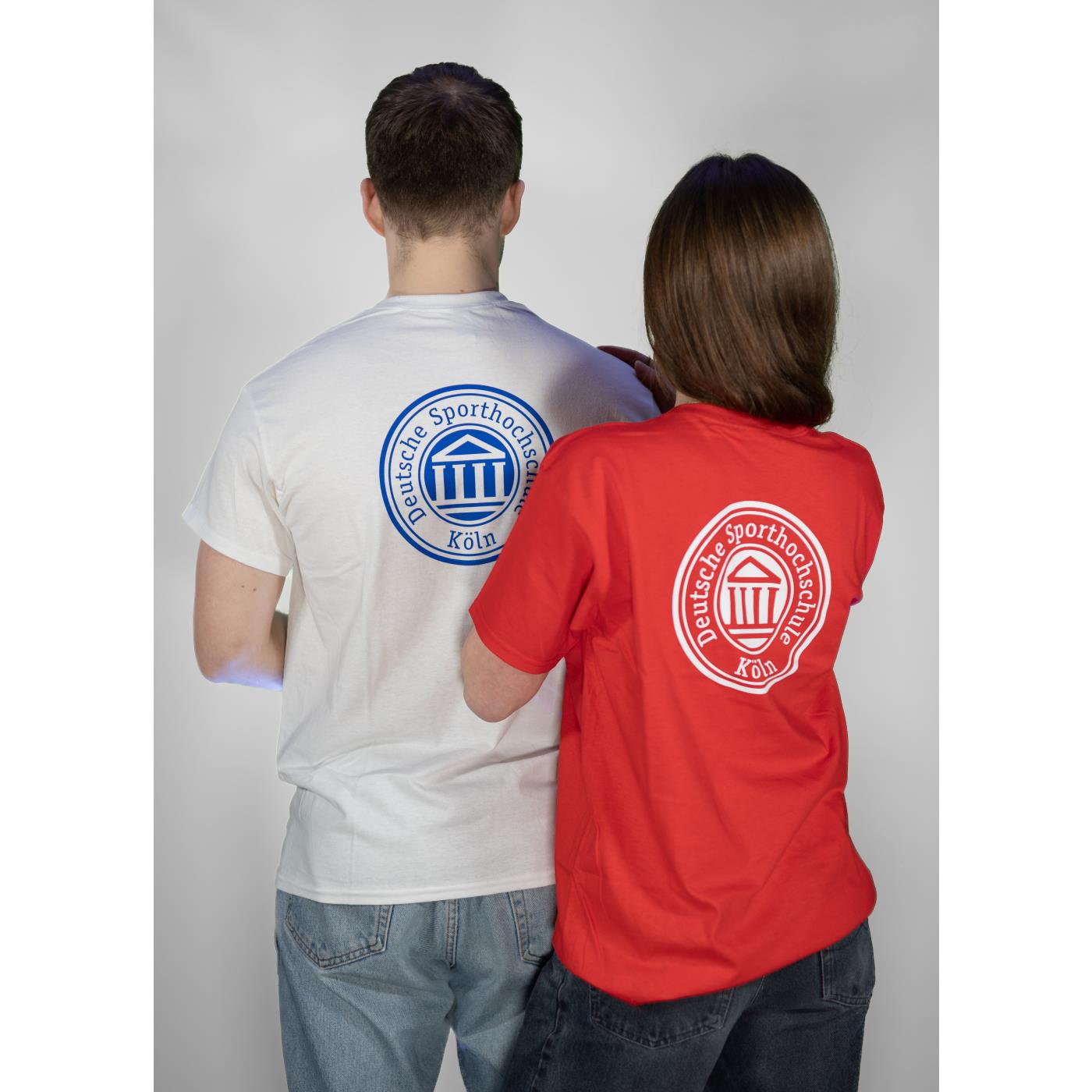 Das weiße Allrounder T-Shirt überzeugt als Basicartikel mit seinem minimalistischem Design und sportlichen Charakter. Auf der linken Brustseite ist das runde DSHS-Siegel in blau und klein platziert, auf der Rückseite findet sich der große Print mit dem gleichen Logo wieder. Der gerade Unisex-Schnitt macht das Shirt zu einem idealen Allrounder im Alltag, egal ob in der Mensa, beim Sport oder im Hörsaal. Ein Muss für alle Spohos in der klassischen Farbkombination der Hochschulfarben!